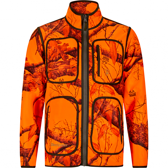 Auf der einen Seite klassisch in Oliv, auf der anderen Seite mit dem auffälligen Realtree Teclwood Signalorange – ideal für mehr Sichtbarkeit in schwierigen Lichtverhältnissen oder sicherheitsrelevanten Situationen. Egal, ob im Wald oder auf dem Feld, mit dieser Wendejacke sind Sie immer gut erkennbar.