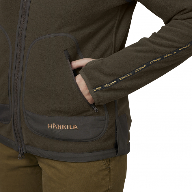 Die Härkila Kamko Wendefleecejacke für Damen ist mit ihren vier Taschen auf jeder Seite ein kleines Raumwunder. Neben den beiden Brusttaschen für Funkgerät und Handy bieten die beiden Fronttaschen viel Platz für Jagdzubehör. Alle Taschen sind mit einem Reißverschluss versehen, so dass die Jagdausrüstung sicher verstaut werden kann.