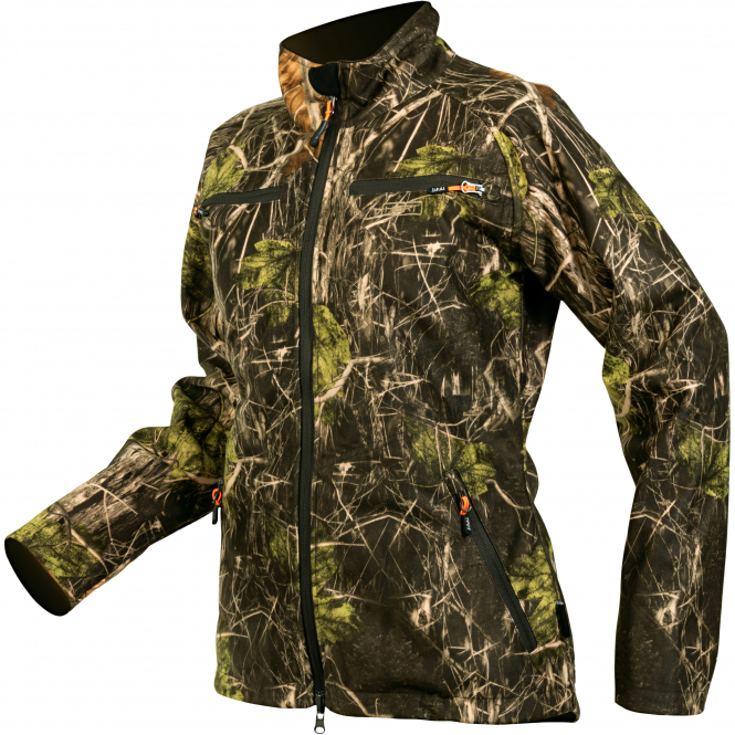 Geräuscharme, winddichte Wendejacke für die Pirsch auf Hochwild. Dank des Forest-Tarnmusters kann sich der Jäger seinem Ziel geräuschlos und unentdeckt nähern. Das gut sichtbare Blaze-Tarnmuster auf der Wendeseite erhöht die Sicherheit. Dreifach laminiertes Funktions - Kleidungsstück mit einer Kombination aus geräuscharmem Außengewebe