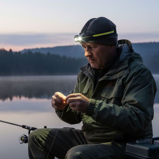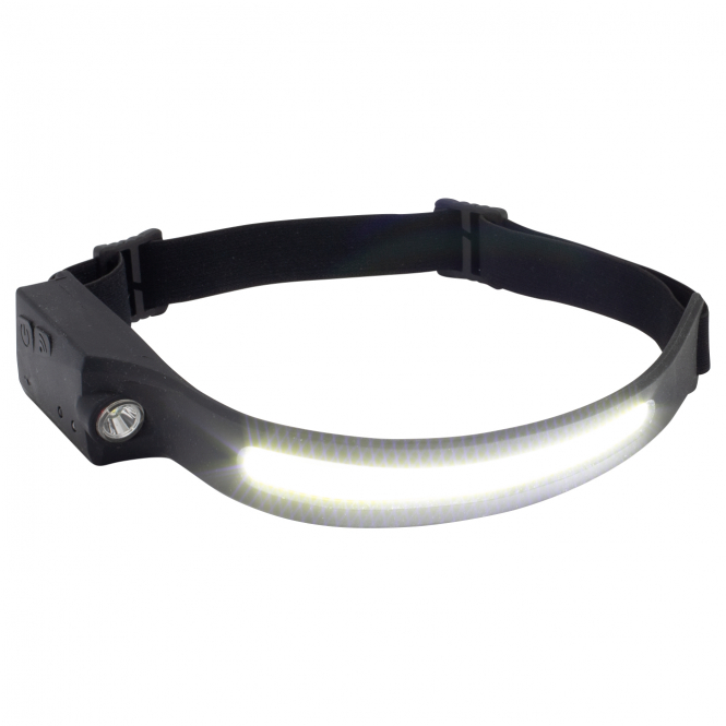 Diese neuartige Kopflampe bietet mit ihrem breiten, sehr hellen COB-LED-Bereich ideales Licht für Arbeiten in der Dunkelheit.