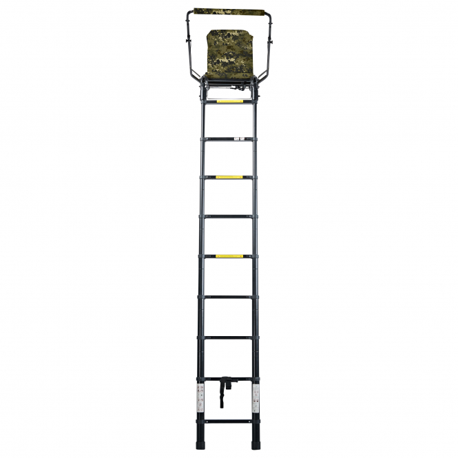 Dieser hochwertige Hochsitz überzeugt durch seine stabile Konstruktion, das geringe Eigengewicht und die schnelle Montage. Dank der Teleskopleiter ist er besonders transportfreundlich und eignet sich ideal für den mobilen Jagdeinsatz. Die Tarnfarbe Phantom-X Camou in Kombination mit schwarzen Elementen sorgt für eine unauffällige Integration in die Umgebung. Die gepolsterte Sitzfläche sowie die wetterfeste Sitz- und Waffenabdeckung aus 100 % Polyester bieten hohen Komfort und Funktionalität auch bei längeren Ansitzen. Mit einer Montagezeit von nur etwa 15–20 Minuten ist der Hochsitz schnell einsatzbereit.Gesamthöhe: ca. 330 cm, Leiterlänge: ca. 260 cm (Teleskopleiter), Sitzfläche: ca. 44,5 × 32 cm, Anzahl der Sprossen: 9 Schritte, Gesamtgewicht: ca. 17,6 kg. Maximale Tragkraft: 130 kg (inkl. Person und bis zu 20 kg Ausrüstung) Transportmaße: ca. 96 × 48 × 15 cm. Farbe: Phantom-X Camou / Schwarz