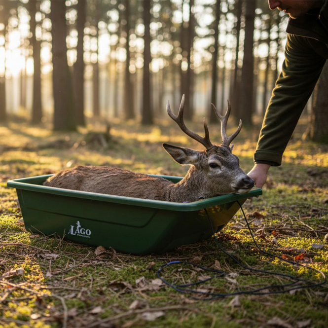 Robuste Wildwanne in stabiler Schlittenform mit integrierten Kufen für leichtes Ziehen und sicheres Handling im Revier. Die formstabile Konstruktion aus widerstandsfähigem HDPE sorgt für hohe Belastbarkeit bei gleichzeitig geringem Eigengewicht. Die glatte Innenfläche ermöglicht eine einfache und hygienische Reinigung. Durch die hohe Seitenwand eignet sich die Wanne ideal für den Transport von Wild, Ausrüstung oder sonstigem Jagdbedarf.