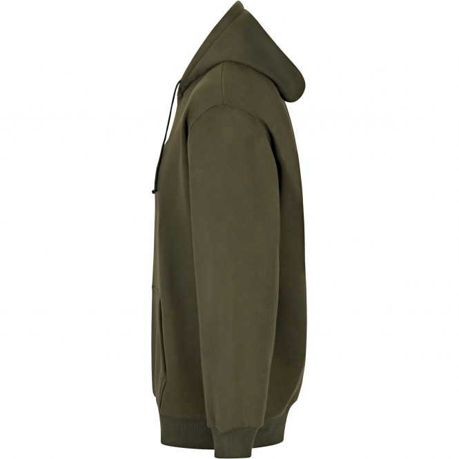 Dank der Größen von M bis 6XL sitzt der Hoodie bequem über Jagdbekleidung und bietet ausreichend Bewegungsfreiheit. Farbe: oliv.