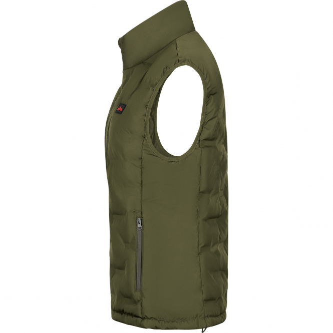 Damen Heizweste im modernen Style- die ideale Begleitung für Jäger und Outdoorbegeisterte. Diese Weste bietet durch sechs Heizelemente in der kalten Winterzeit Komfort und Wärme. Die hochwertige beheizte Weste vereint innovative Technologie mit funktionaler Ausstattung. Die aktive Wärmeleistung kommt auf drei Heizstufen aus der Heizmembrane, die einen großflächigen Rückenbereich bedeckt (1. Stufe 45°C, 2 Stufe 50°C, 3. Stufe 55°C). Der glatte Oberstoff sorgt dafür, dass die Außenjacke gut darüber gleitet und die Bewegung so nicht eingeschränkte wird. Daher ist ein hoher Tragekomfort weiterhin gewährleistet. Die Weste ist mit vier Taschen ausgestattet. Eine Brusttasche und zwei seitliche Taschen, die sich mit einem Reißverschluss schließen lassen. Eine Innentasche. Der Knopf, um die Heizweste einzuschalten, befindet sich in der Brusttasche, sodass es kein Wild durch das Licht vertreiben kann. Die glatte Stoff-Oberfläche sorgt dafür, dass jede Außenjacke gut darüber gleitet. So wird die Bewegung nicht eingeschränkt und ein hoher Tragekomfort gewährleistet. Mit elastischem Band am Bündchen zum Verstellen. Benötigt für den Betrieb eine Powerbank (5V 2A), nicht im Lieferumfang enthalten. Bitte separat bestellen. Farbe: oliv.