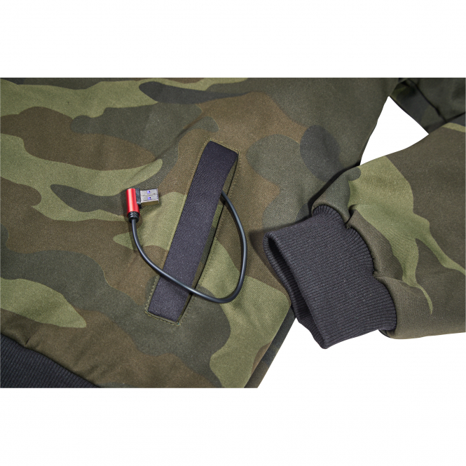 Verabschieden Sie sich von Frösteln und Unbehagen bei Minusgraden, dank unserem neuen Pullover Nevis. Der Pullover bietet ein revolutionäres Heizsystem, das für maximalen Komfort und Stil sorgt. Mit sieben Heizbereichen (3x Heizekemente im Rückenbereich, 2x Heizelemente im Vorderbereich, 2x Heizelemente in jedem Ellenbogen). Wählen Sie je nach Bedarf zwischen 40°C, 50°C und 60°C für personalisierten Komfort. Er bietet nicht nur Wärme, sondern auch ein trendiges, vielseitiges Design, das in jeder Situation überzeugt. Die Powerbank lässt sich bequem in der Vordertasche verstauen und ist so leicht zugänglich und tragbar. Die Kapuze mit Kordelzug verleiht einen Hauch von Vielseitigkeit, da Sie sie an kälteren Tagen für zusätzliche Isolierung unter einem Mantel oder einer Jacke tragen können. Erweitern Sie Ihre Wintergarderobe mit diesem unverzichtbaren, beheiztbaren Hoodie, der Funktionalität und Mode mühelos vereint. Dear Hoodie ist mit gerippten Ärmelbündchen und Saum. Mit Teddyfleece unterlegt. il Lago rubber badge auf dem Arm. Farbe: camou.