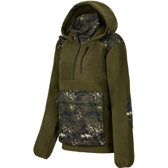 Der Fleece Midlayer überzeugt das ganze Jahr über mit hervorragendem Tragekomfort und ist ein unverzichtbares Kleidungsstück für Angler und Jäger, besonders an kühlen Sommerabenden. Der hohe Kragen, der sich per Reißverschluss schließen lässt, schützt zuverlässig vor Wind und Kälte. Die Kapuze aus warmem Fleecestoff ist mit einer Kordel individuell verstellbar und bietet zusätzlichen Schutz bei wechselhaftem Wetter.