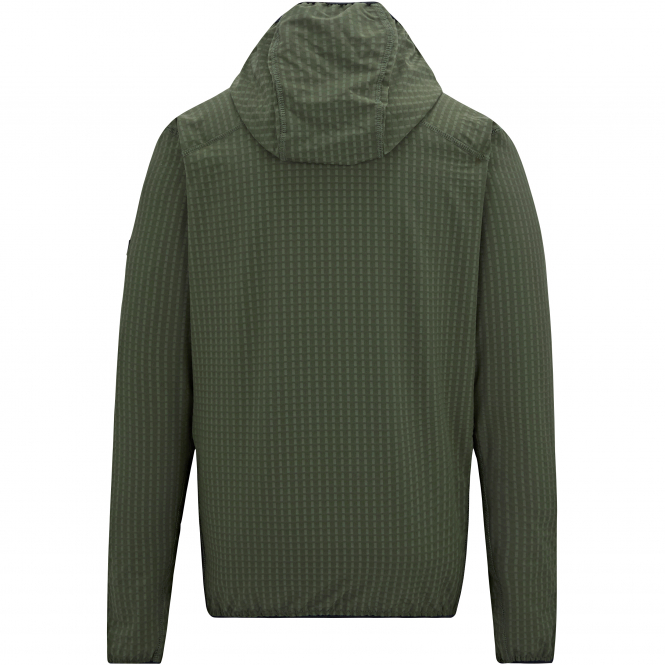 Der Fleece kombiniert ein warmes Fleece-Gewebe mit elastischen Stretch-Einsätzen und bietet dadurch ein ausgewogenes Verhältnis aus Isolation und Beweglichkeit. Eine fest angesetzte Kapuze, zwei tief angesetzte Reißverschlusstaschen sowie eine zusätzliche Brusttasche mit Reißverschluss bieten Schutz und Stauraum für wichtige Kleinteile. Elastische Einfassungen an Kapuze, Ärmelabschlüssen und Saum sorgen für einen sicheren Sitz, während recycelte Materialien den nachhaltigen Ansatz des Kleidungsstücks unterstreichen.