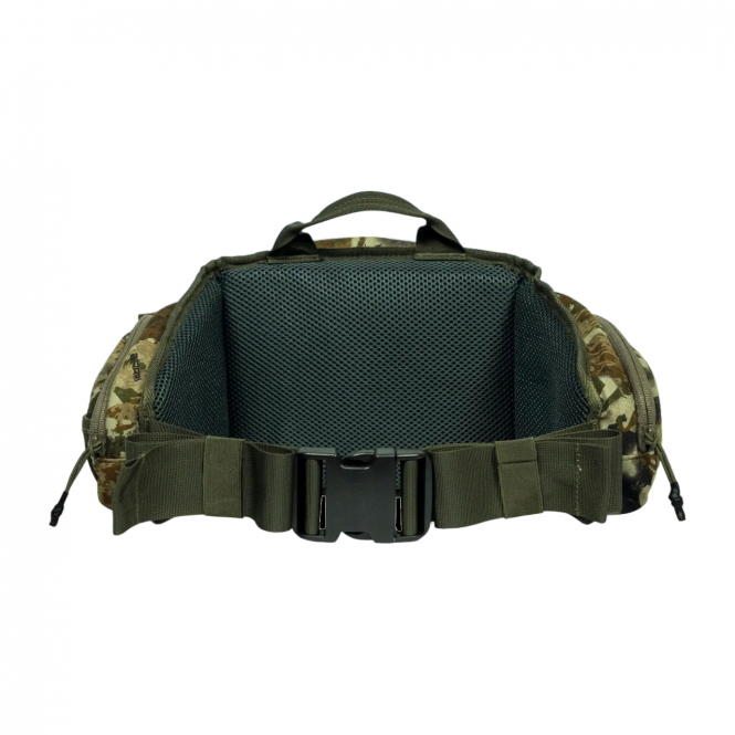 Ergonomische und funktionsreiche Zubehörtasche aus strapazierfähigem 500D und zusätzlich durch DWR-Imprägnierung dauerhaft wasserabweisendem Nylonobermaterial mit verstärktem Boden. Die Aufteilung in vier leicht zugängliche Taschen bietet großzügigen Stauraum, während die Lendenpolsterung und die Hüftstütze für einen angenehmen Tragekomfort sorgen. Mit praktischen Verbindungspunkten.Farbe: Biarri Camo.